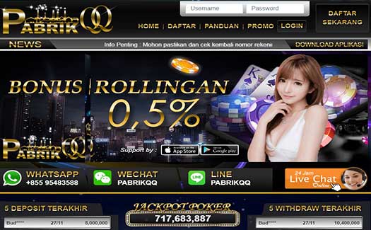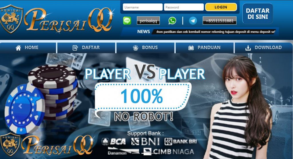 Situs Judi Pkv Games BandarQQ Domino QQ Online Terpercaya yang menyediakan permainan judi qq, bandarq, domino99 dan poker qq online terbaik no 1 di Indonesia. Tersedia 11 permainan judi kartu online server pokerv / pkv games terbaik seperti domino99, bandarq, BD QQ, aduq, bandar sakong, bandar poker, bandar66, poker online, capsa susun, perang baccarat dan perang dadu dengan winrate hingga 90%.