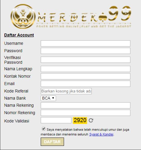 Cara Daftar Pkv Games Merdeka99 juga sangat mudah. Hanya ada 2 ketentuan yang wajib dipenuhi bagi siapa saja yang ingin bergabung sebagai member Merdeka99. Pertama, Anda harus memiliki salah satu rekening bank lokal Indonesia seperti : BCA, Mandiri, BNI, BRI dan Danamon.